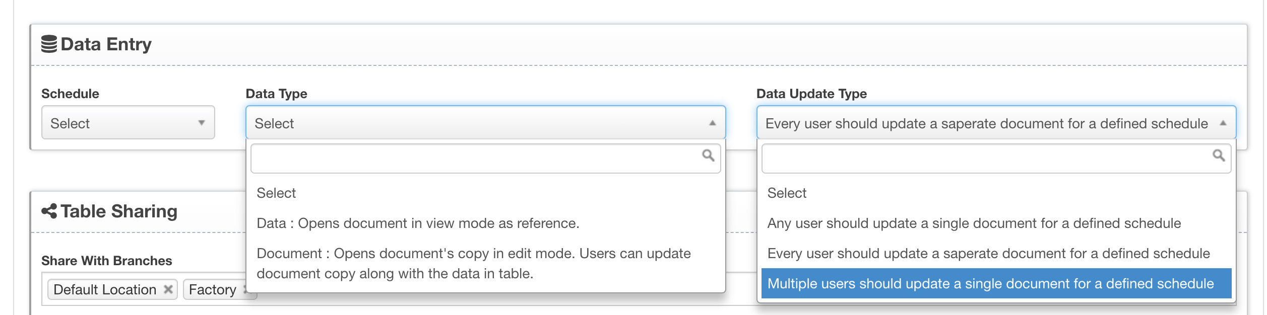 When you create any Custom HTML Form, you would want users to add data to those forms. Data can be added periodically (e.g daily, weekly, monthly etc) or without defining any fixed period. You may also want users to periodically update any single/ multiple document/ spreadsheet etc. You can do so by creating HTML Forms for such documents/ spreadsheets and add schedule to the HTML Form. You can also define if each user needs to update a single document or multiple users needs to update multiple documents for a defined period or any user can update a single document/ spreadsheet.