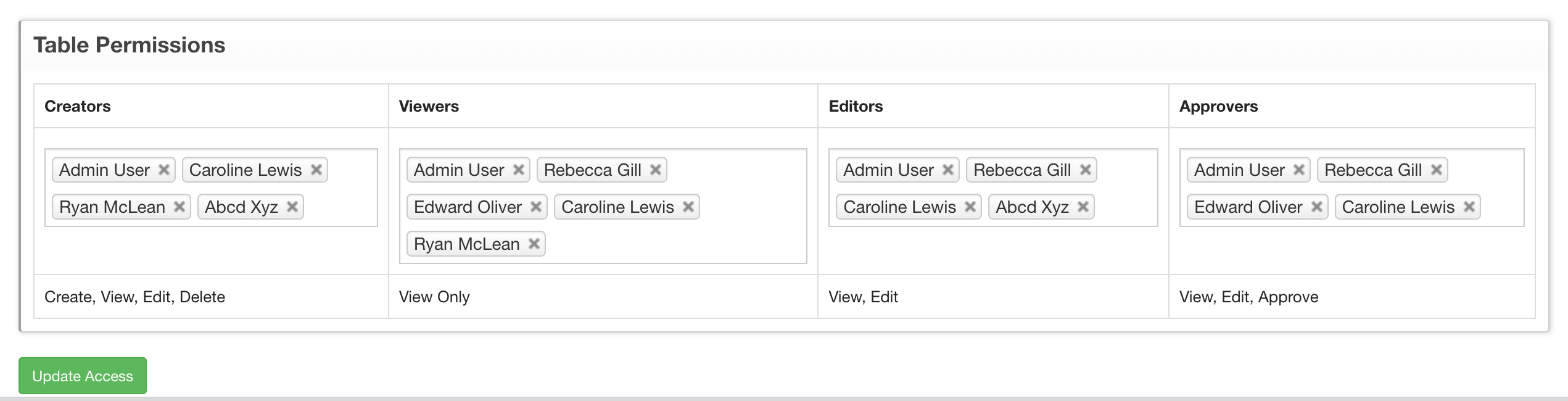 At 3rd layer, you can define who can access each Custom HTML Form that you create using FlinkISO APIs. By default, all custom HTML Forms are derived from the document and hence they automatically inherit the access from the QMS Document for which the custom Form is created. E.g. If you have a Customer Complaint Document which has access to branch "A" and if you create a custom HTML Table for the Customer Complaint document, then everyone from branch "A" will have access to this table. However, you override these access control from the custom HTML Table's View page and define following: